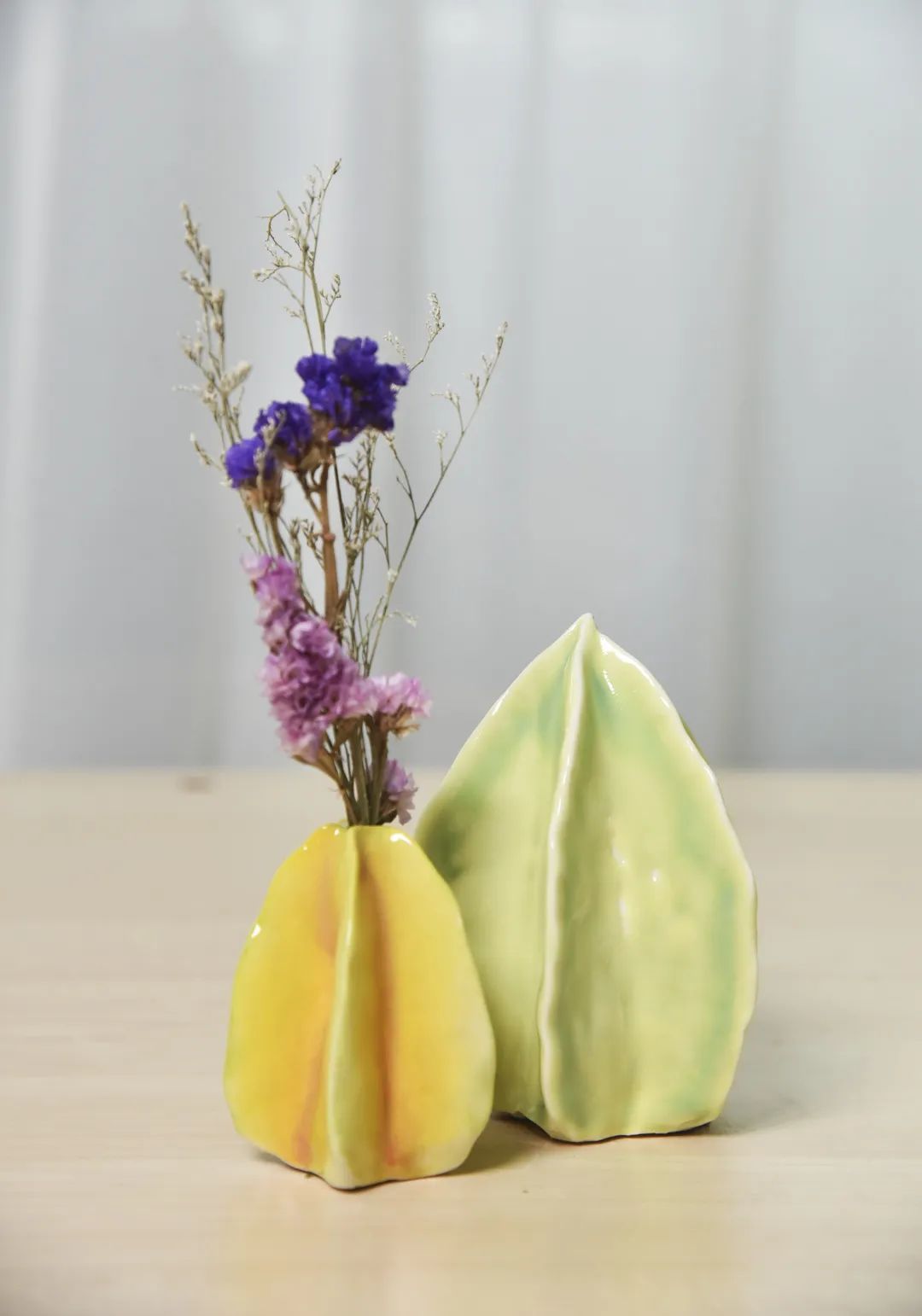 杨桃形状的小花瓶也别有风趣,插三两支花,杨桃的清新自然和花卉的星星点缀,让陶艺走进你的生活~